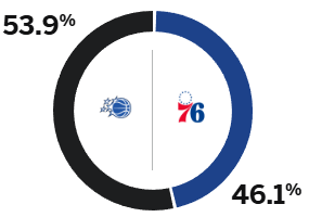 [流言板]ESPN預測明日比賽勝率:76人為46.1%,而魔術(shù)則為53.9%