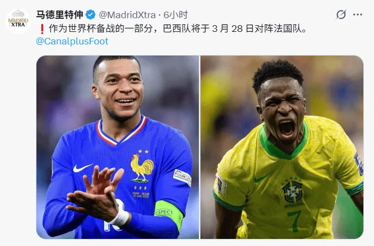 對陣: 巴西隊與法國隊將在3月28日進(jìn)行熱身賽由levinso1 發(fā)表在皇馬專(zhuān)區 https://bbs.hupu.com/realmadrid