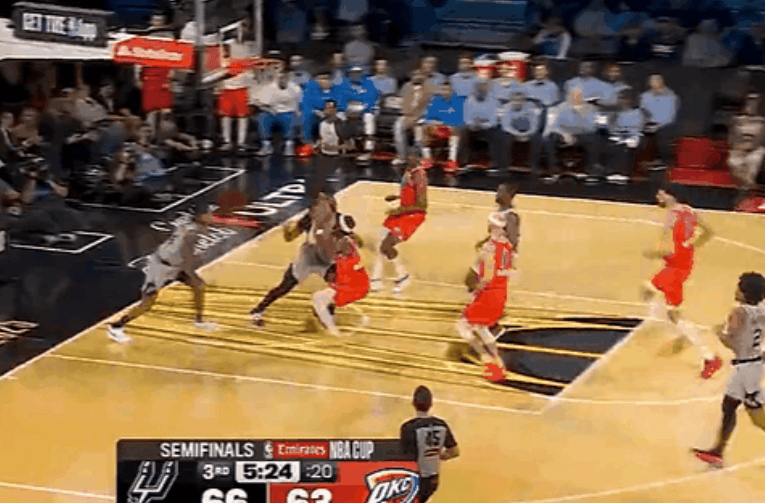 NBA杯半決賽,馬刺對陣雷霆的擊上比賽正在進(jìn)行中。