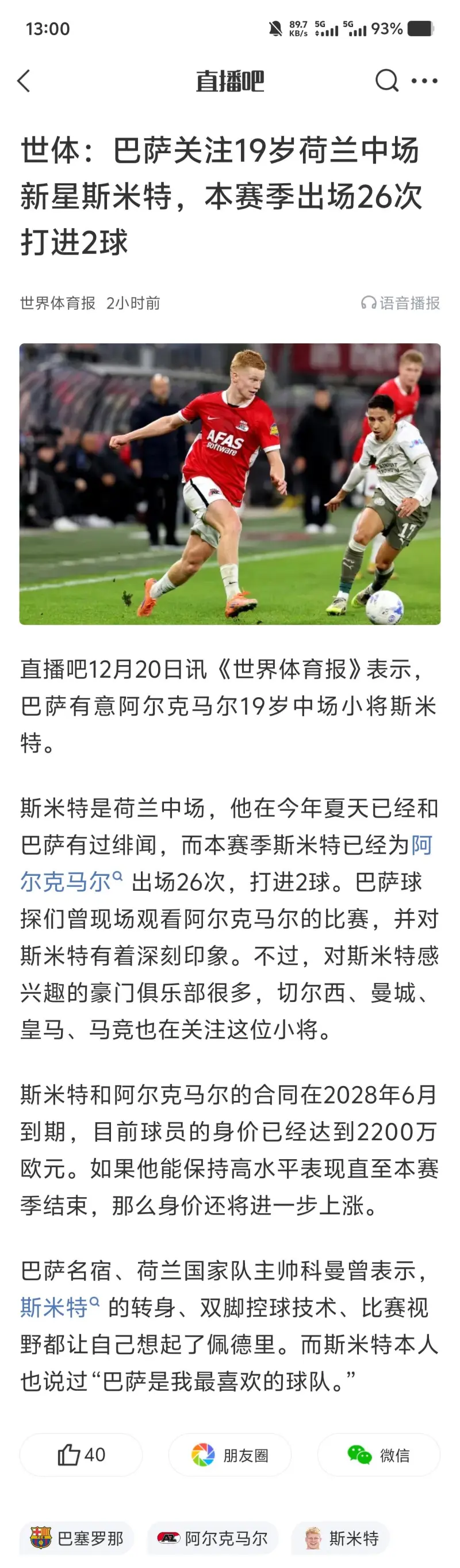 世體:巴薩關(guān)注19歲荷蘭中場(chǎng)新星斯米特,世體歲荷本賽季出場(chǎng)26次打進(jìn)2球由無(wú)極囧JS 發(fā)表在巴薩專(zhuān)區 https://bbs.hupu.com/barcelona