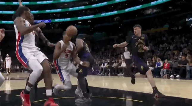 虎撲12月31日訊 NBA常規賽,湖人對陣活塞的掉球第次比賽正在進(jìn)行中。