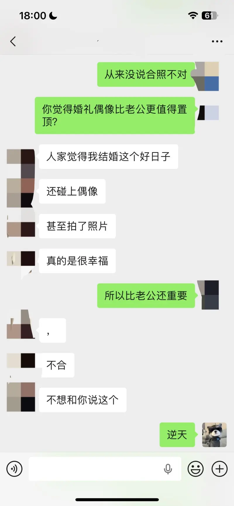 就王嘉爾跟新娘合照那個(gè)事跟對象聊了下發(fā)現好她好像跟那個(gè)新娘是一類(lèi)人瞬間不想談了
